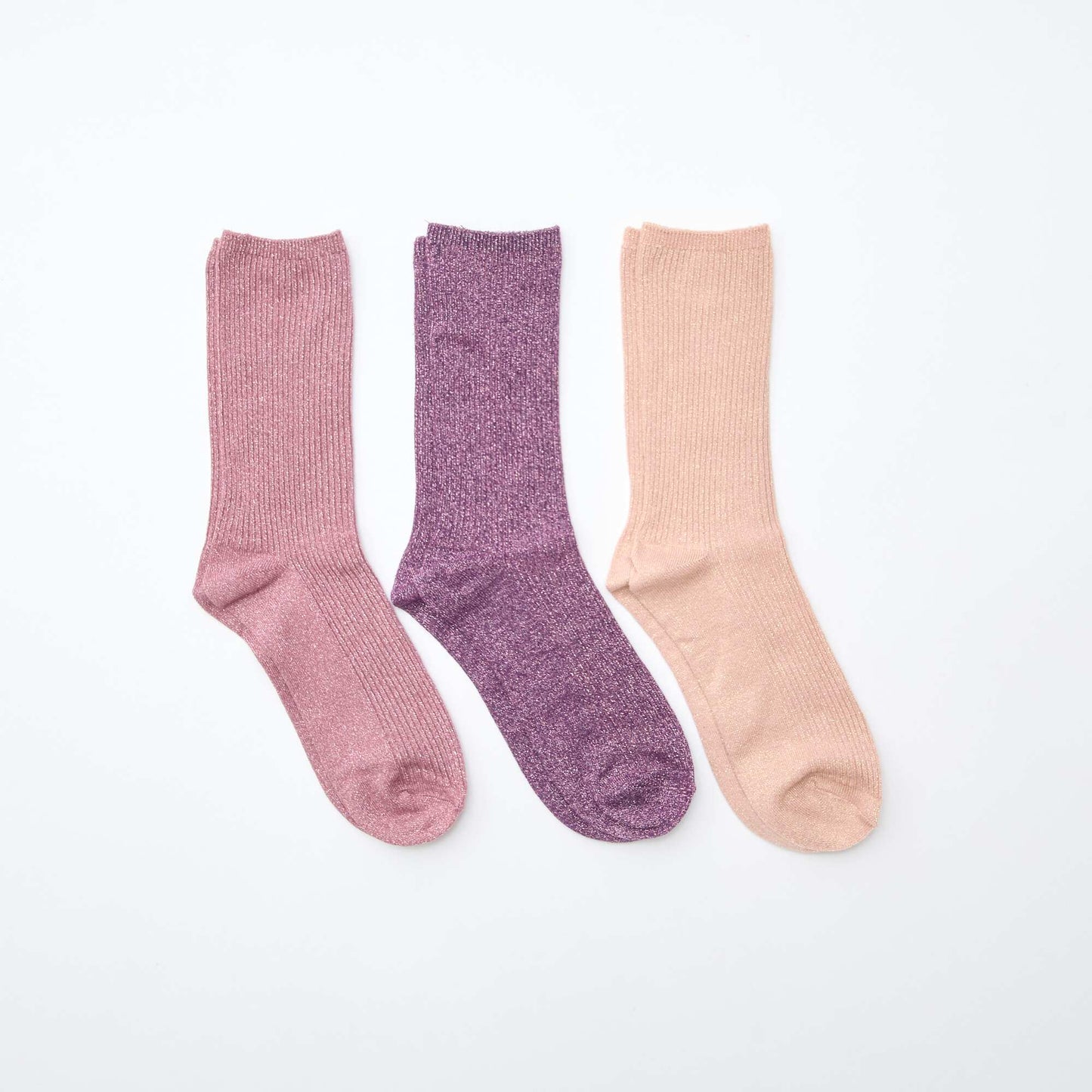 3-Pack of Cotton Socks with Glitter PURPLE