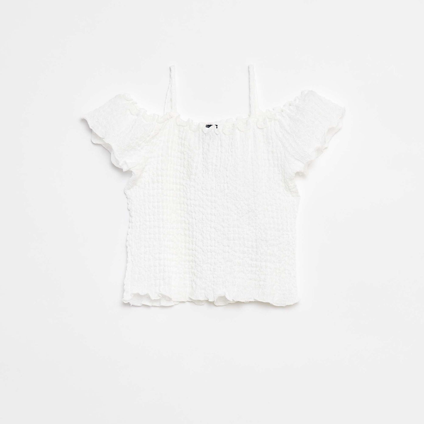 Waffle-knit top WHITE
