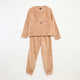 Fleece Long Pajama Set Sweatshirt + Pants - 2 pieces BEIGE