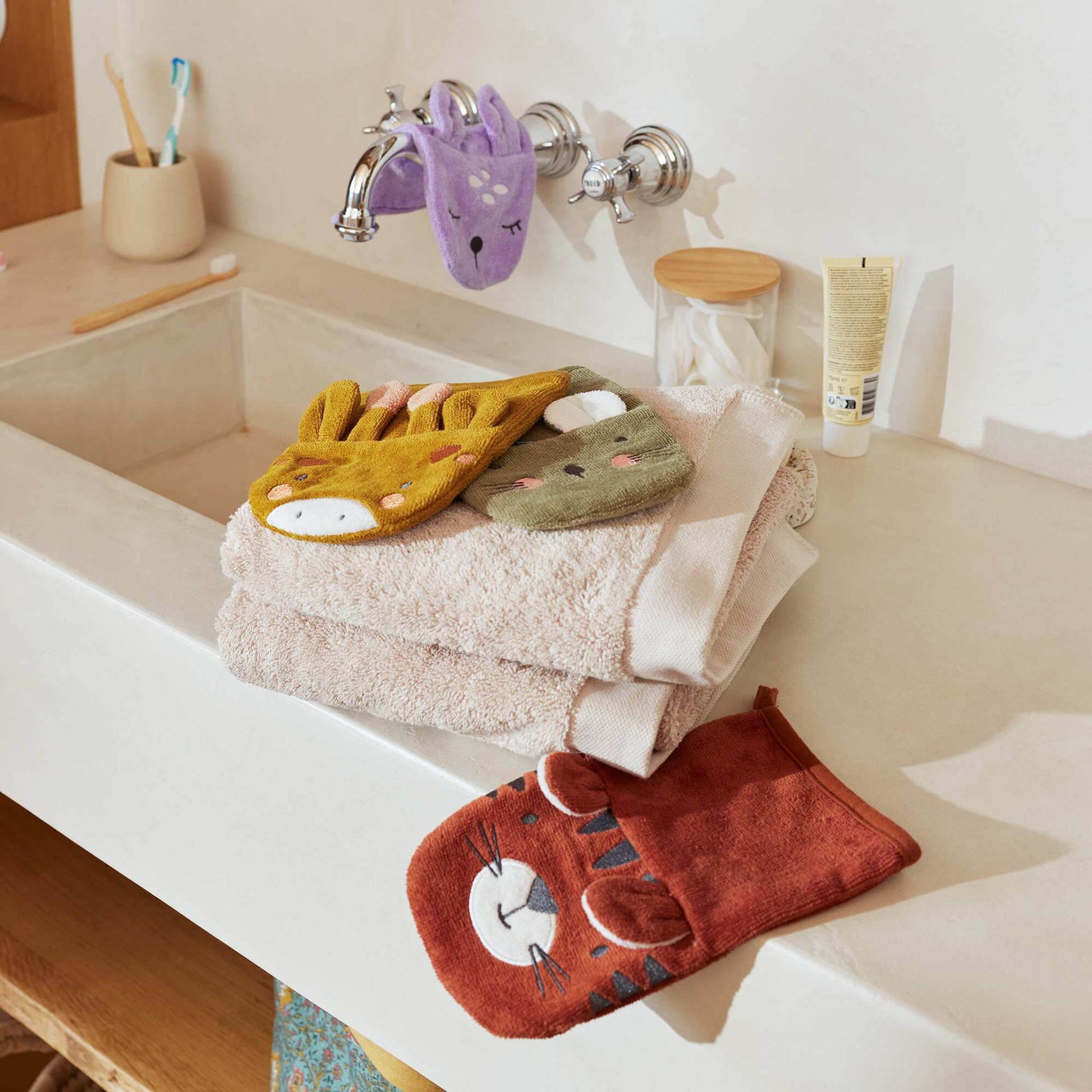 Pack of 2 patterned wash mitts BROWN