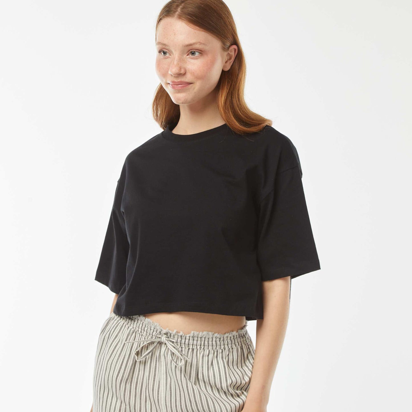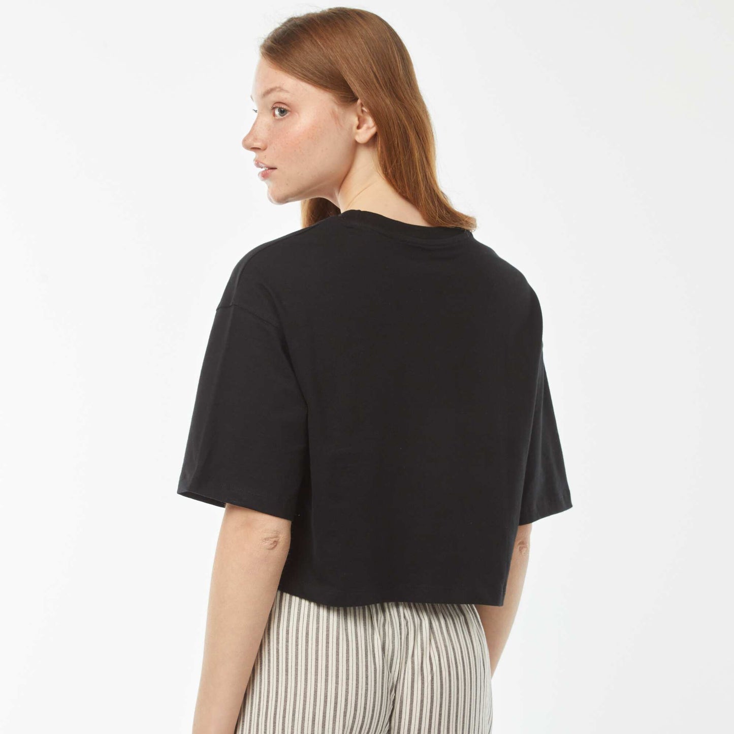 ა სადა მოჭრილი მოკლემკლავიანი მაისური შავი