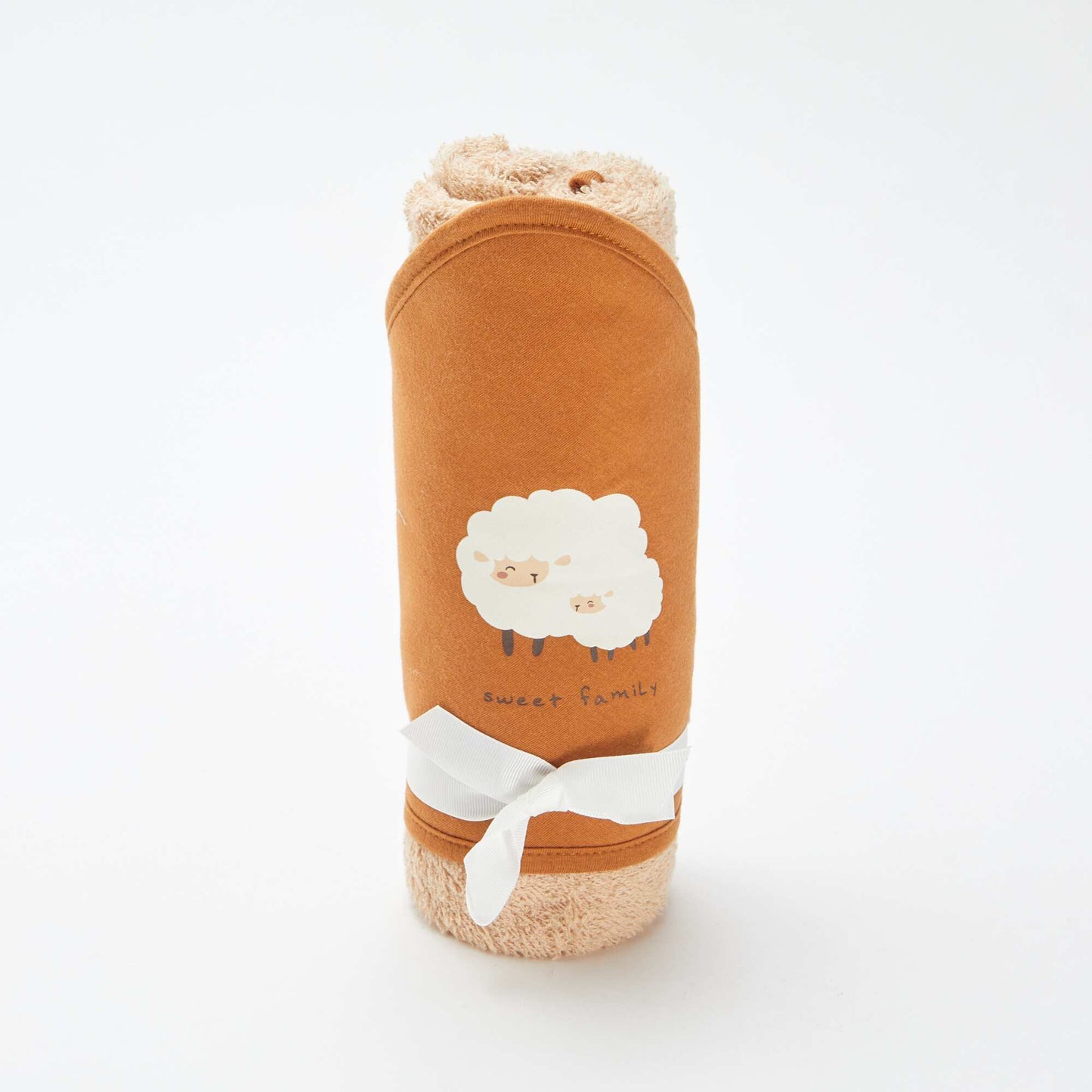 პრინტიანი ტერი ქსოვილის კაპიუშონიანი პირსახოცი - 75 x 75 სმ ნარინჯისფერი