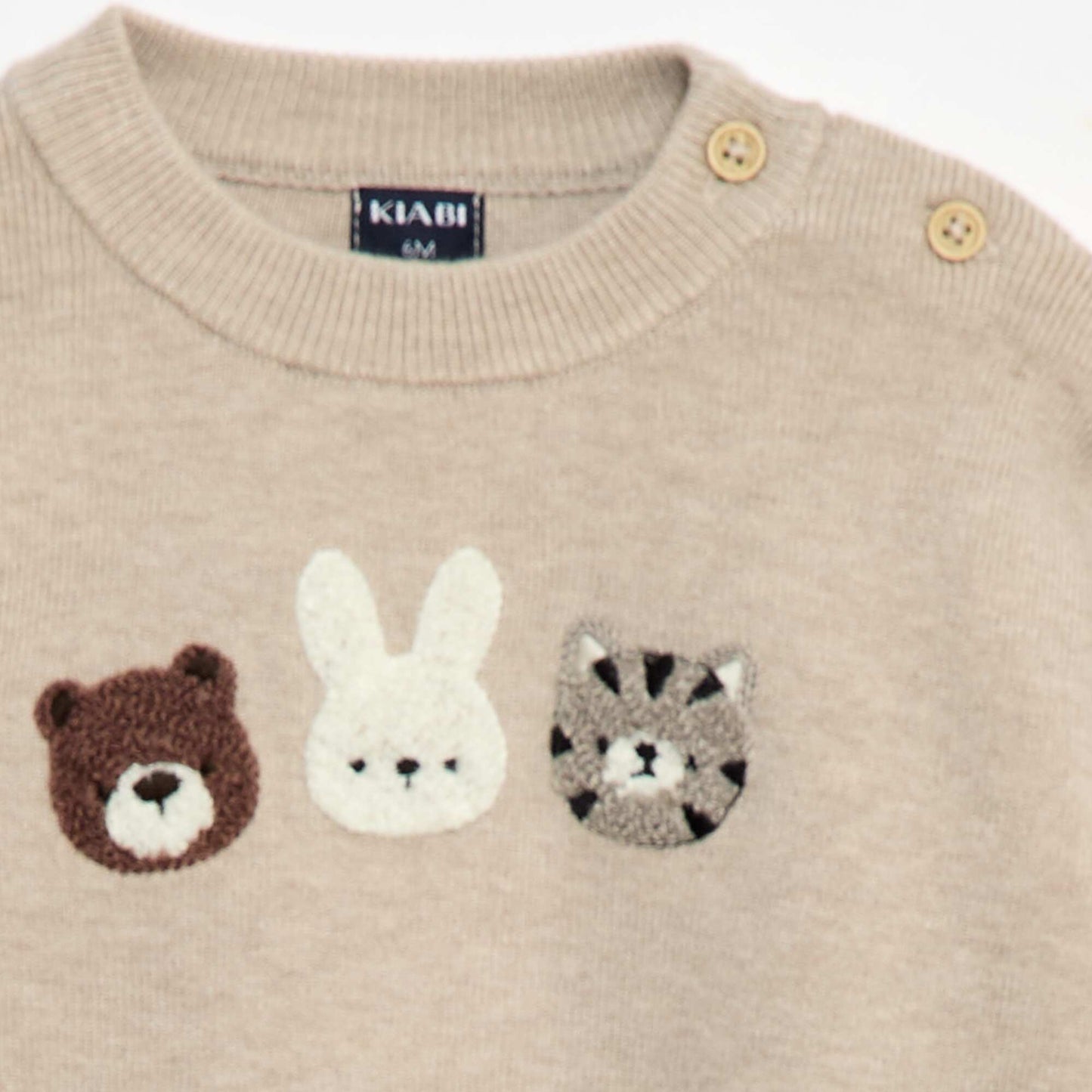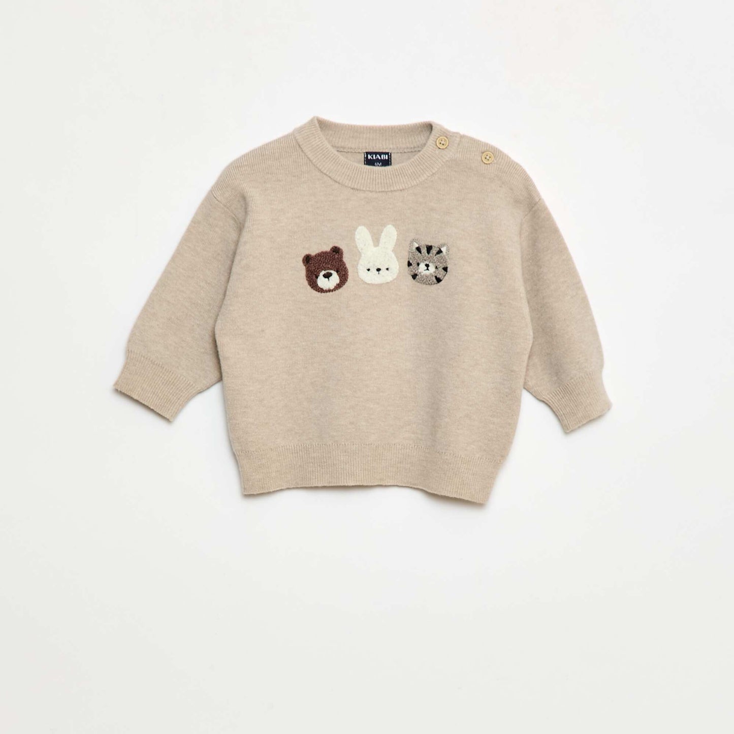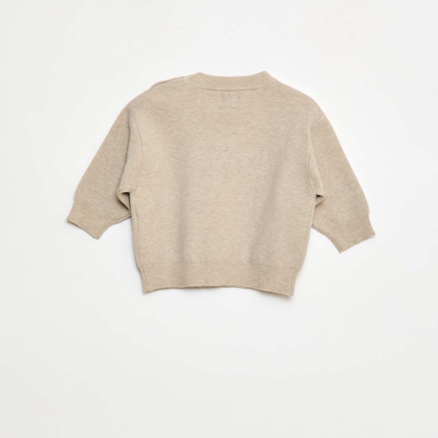 ნაქარგი ნაქსოვი სვიტერი გრძელყელიანი დეკოლტეთი კრემისფერი