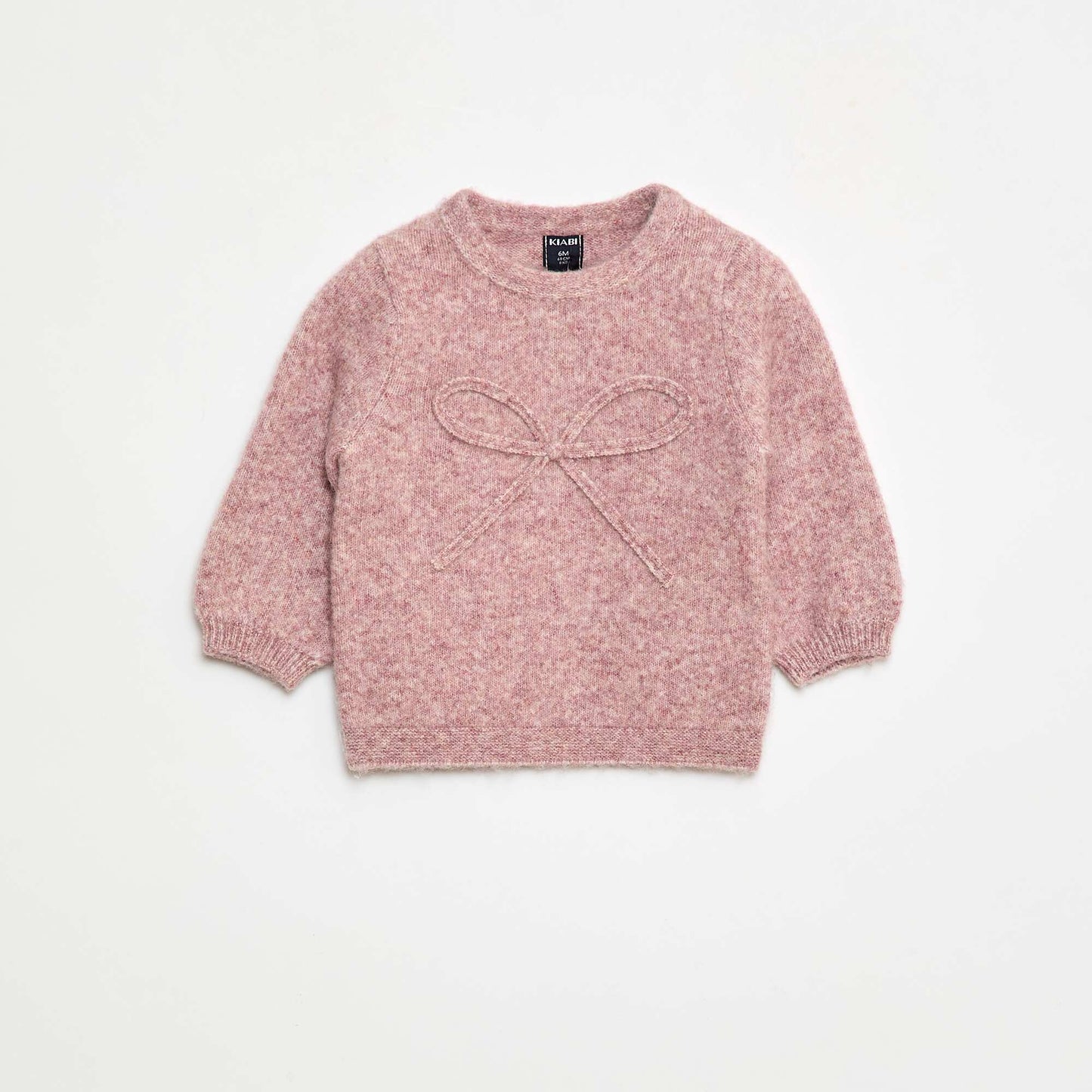 ნაქსოვი ჯემპრი დეკორატიული ბაფთით, ვარდისფერი
