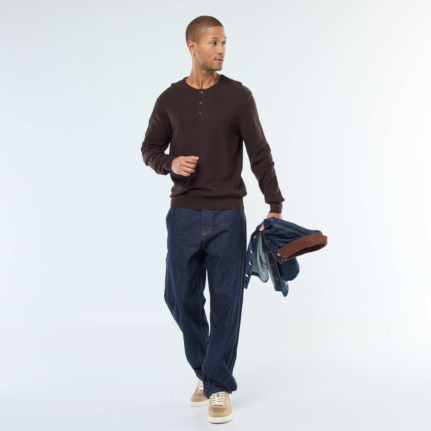 ღილიანი ჯვარედინი დეკოლტე ნაქსოვი სვიტერი ყავისფერი