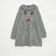 ფუმფულა ნაქსოვი „საშობაო“ კაბა ფრიალა საყელოთი, ნაცრისფერი