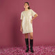 ბრჭყვიალა მინი კაბა კრემისფერი