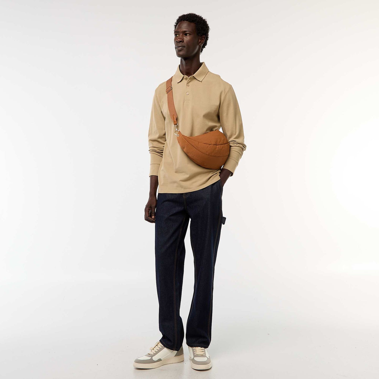 სადა გრძელმკლავიანი პიკე ნაქსოვი პოლოს მაისური კრემისფერი