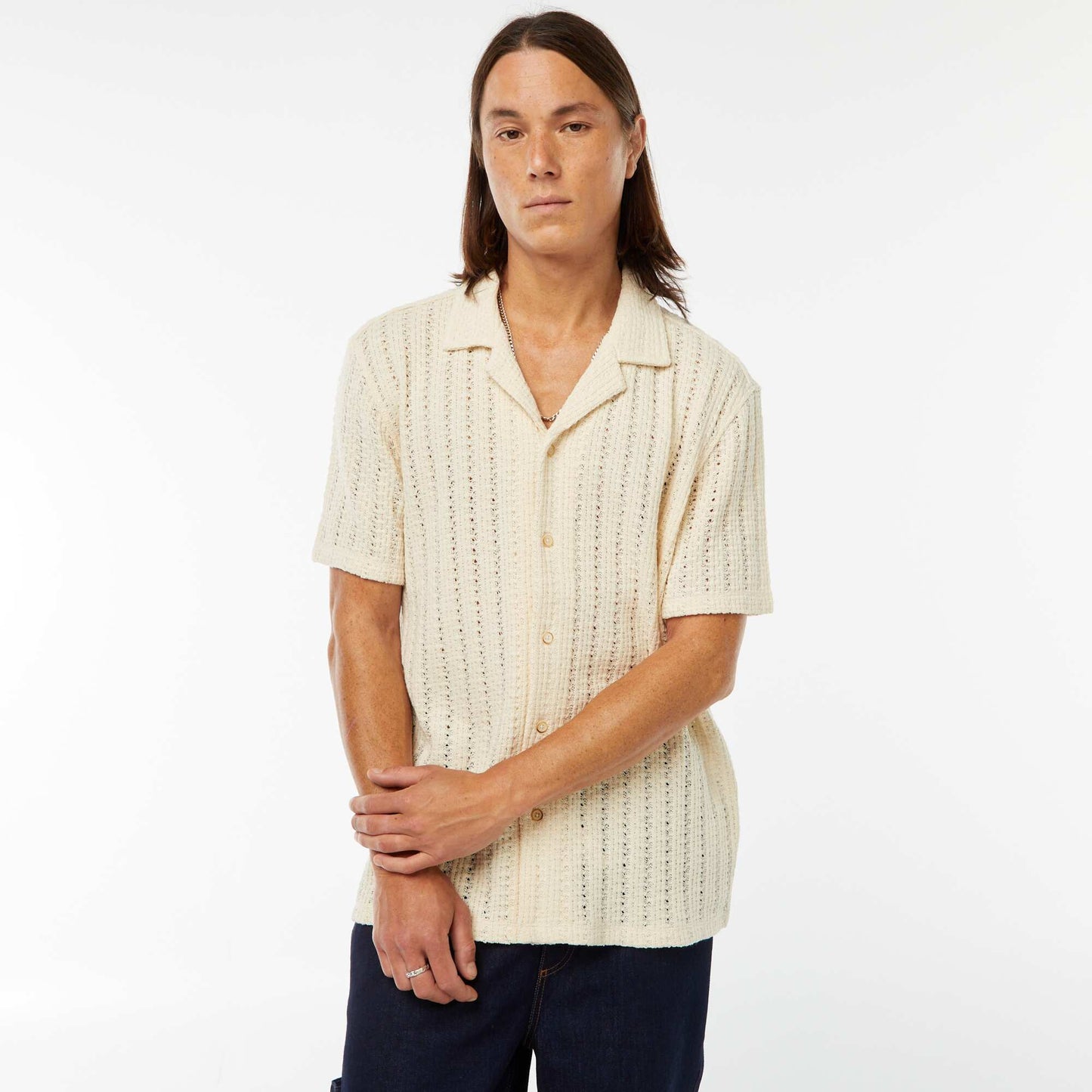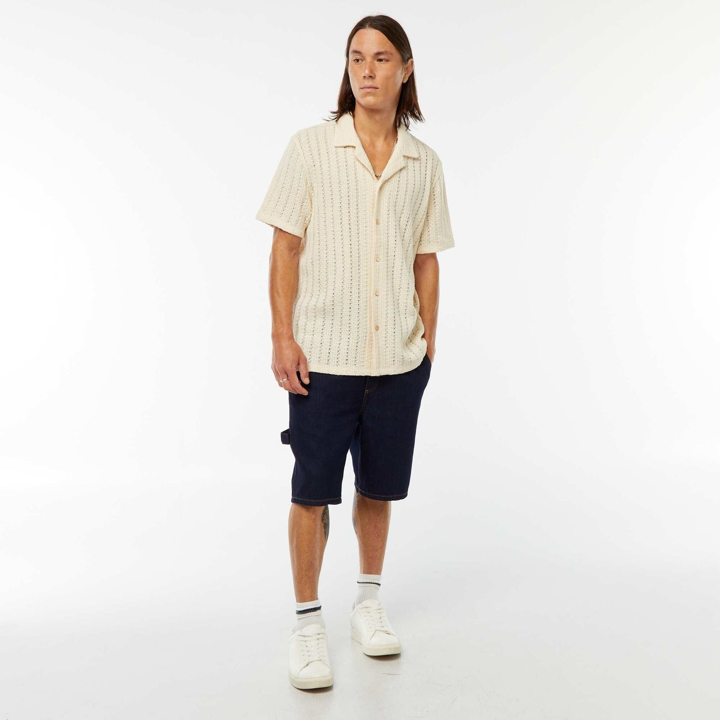 მოკლემკლავიანი აჟურული ნაჭრის პერანგი თეთრი