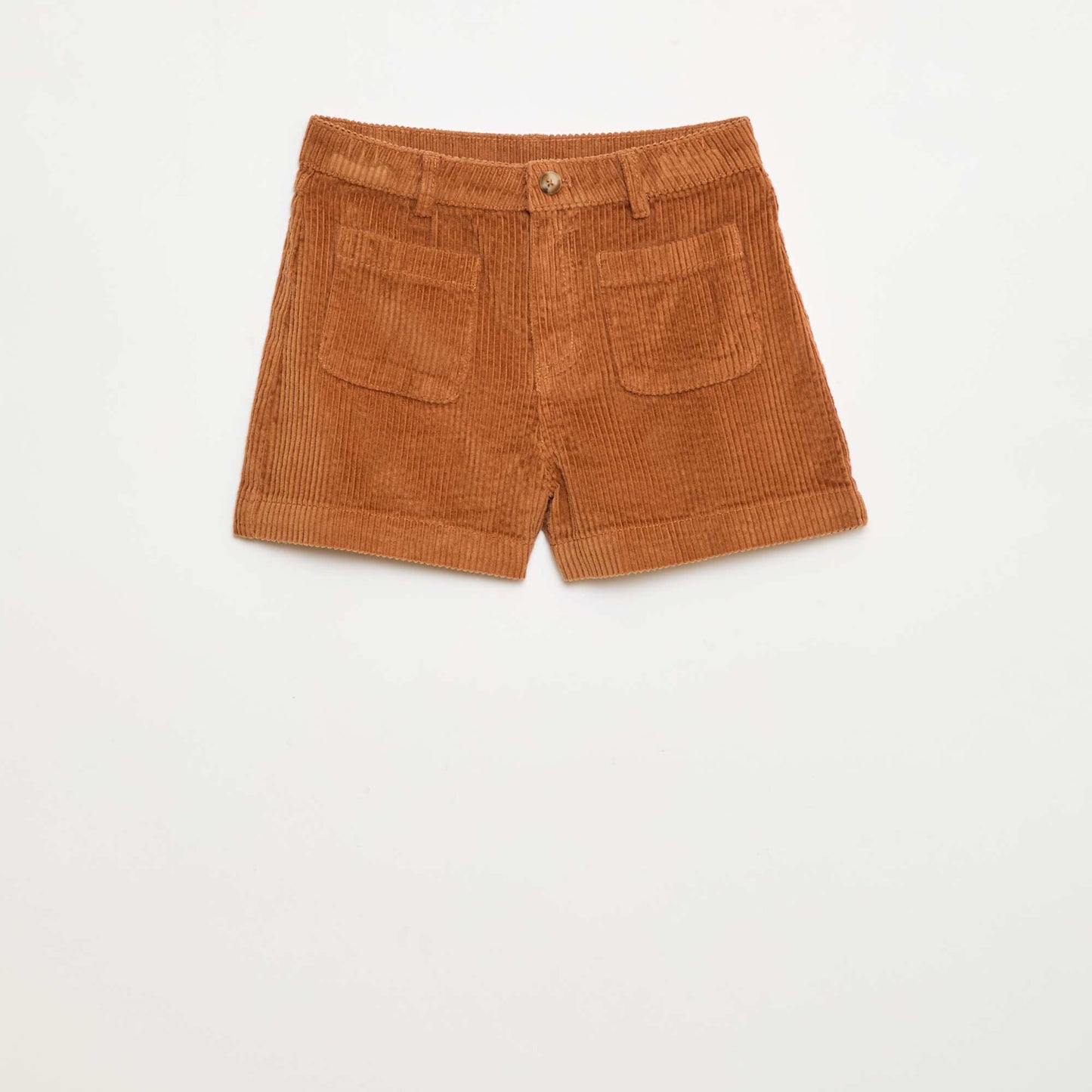 კორდუროი შორტი 2 პატჩის ჯიბით ყავისფერი