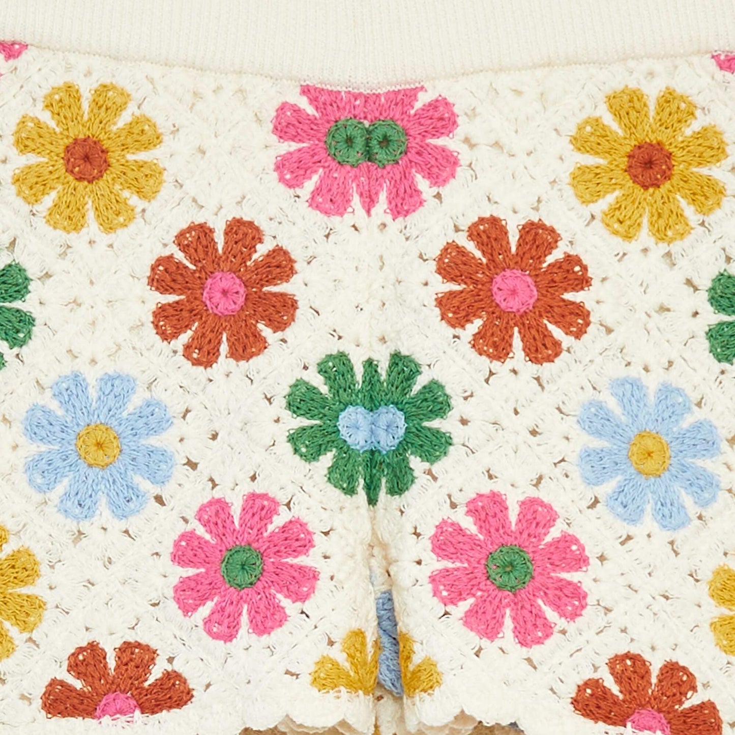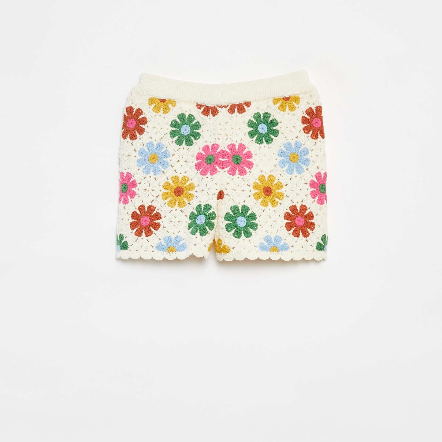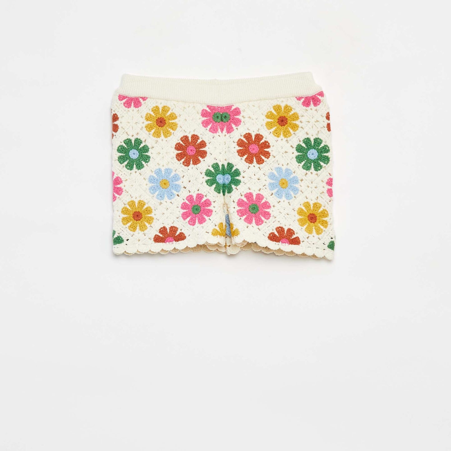 ნაქსოვი შორტი დახრილი კიდეებით კრემისფერი