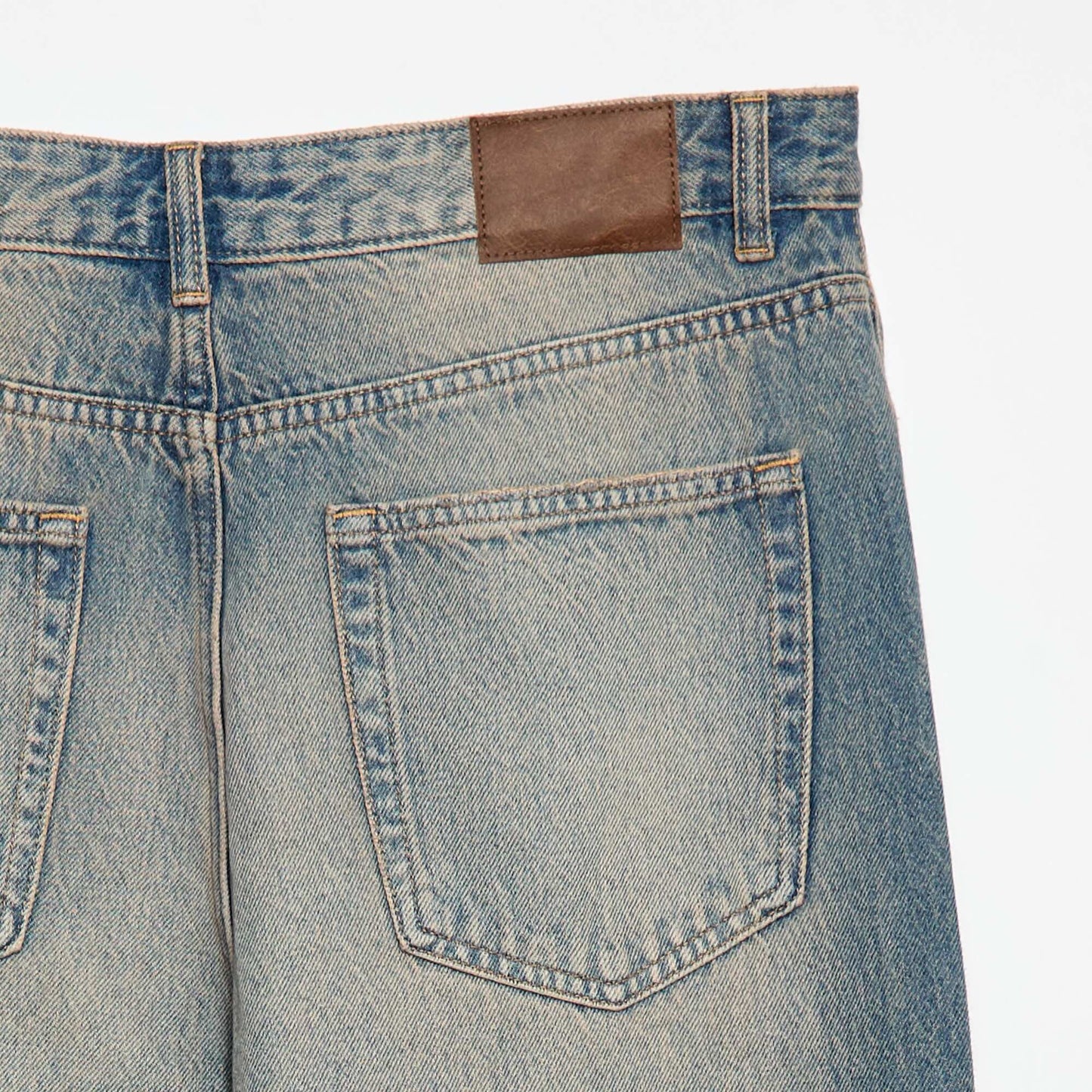 ჩანთიანი განიერი 5-ჯიბიანი ჯინსი ლურჯი