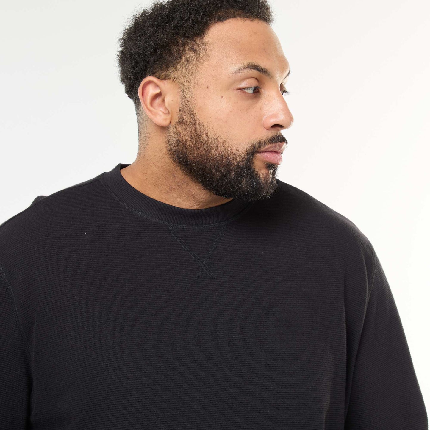 ვერტიკალურ ღარიანი ნაქსოვი სვიტერი გრძელყელიანი დეკოლტეთი შავი
