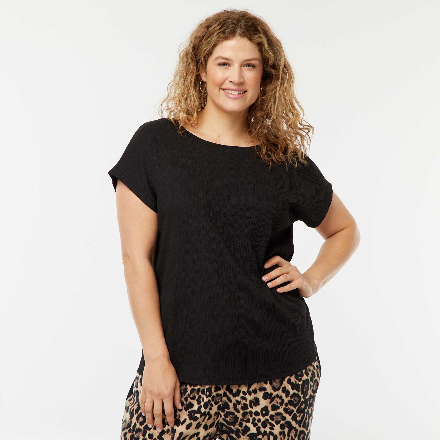 გაშლილი ვაფლის -ნაქსოვი მაისური შავი