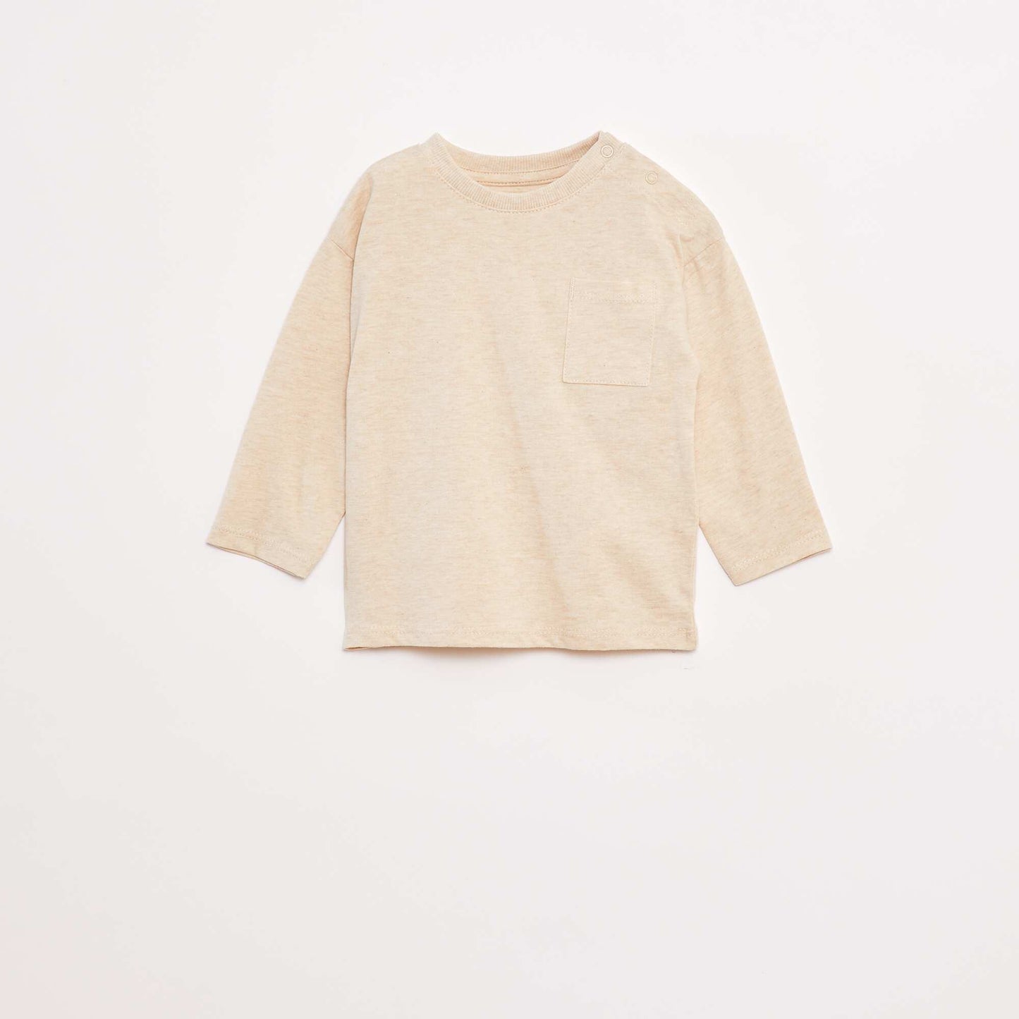გრძელმკლავიანი მაისური მკერდის ჯიბით კრემისფერი