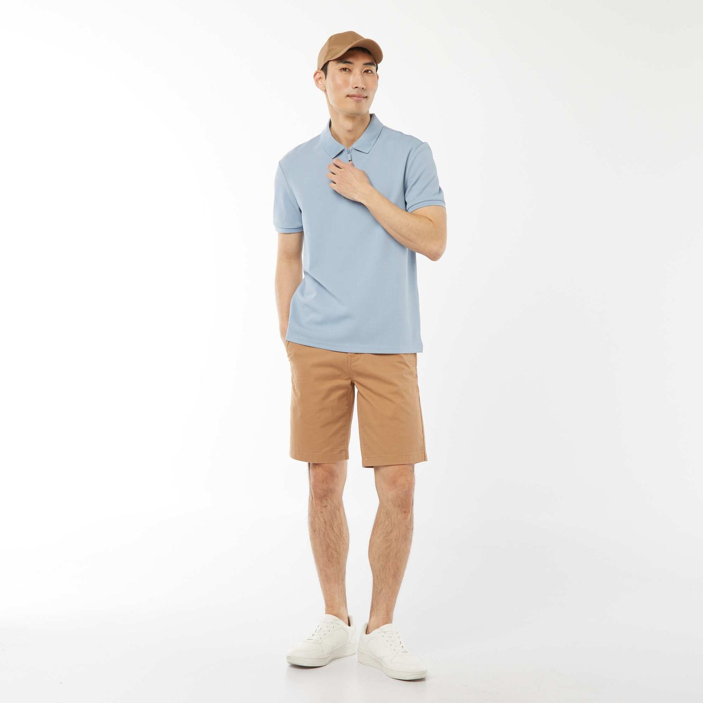 ვაფლის -ქსოვა პოლოს მაისური თან ელვა-შესაკრავი ყელით ლურჯი