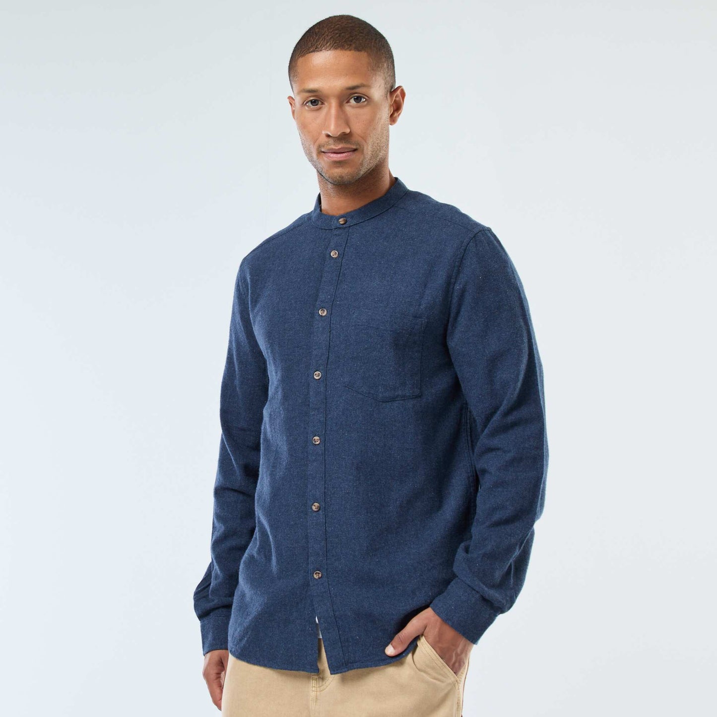სადა ფლანელის პერანგი მანდარინის საყელო ლურჯი