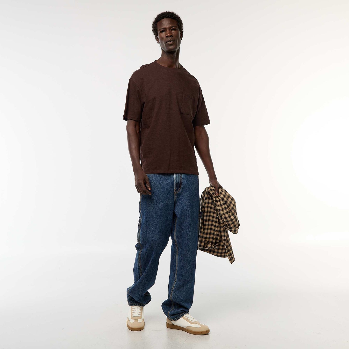 სადა მოკლემკლავიანი მაისური მკერდის ჯიბით ყავისფერი