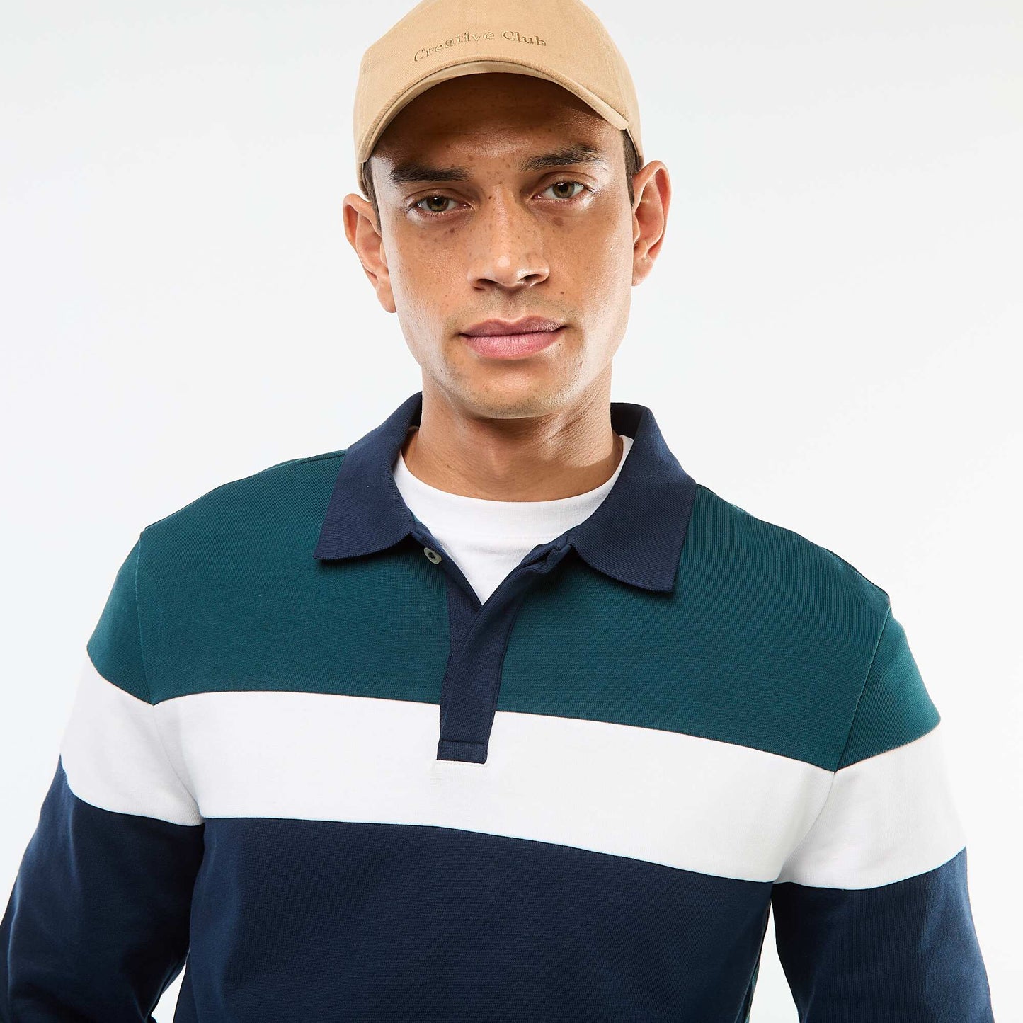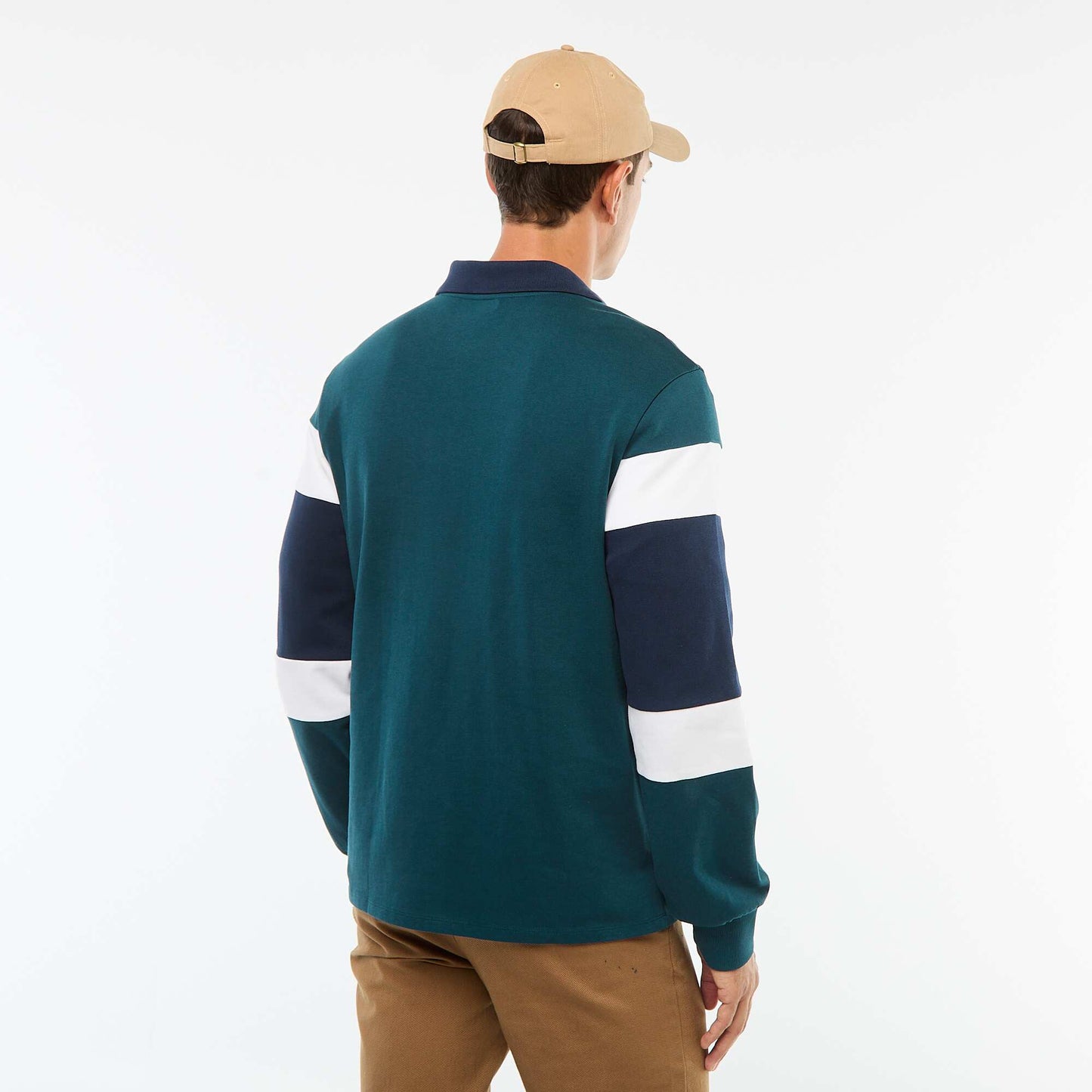 რაგბის სტილის ფერადი ბლოკის გრძელმკლავიანი მაისური პოლოს მაისური მწვანე