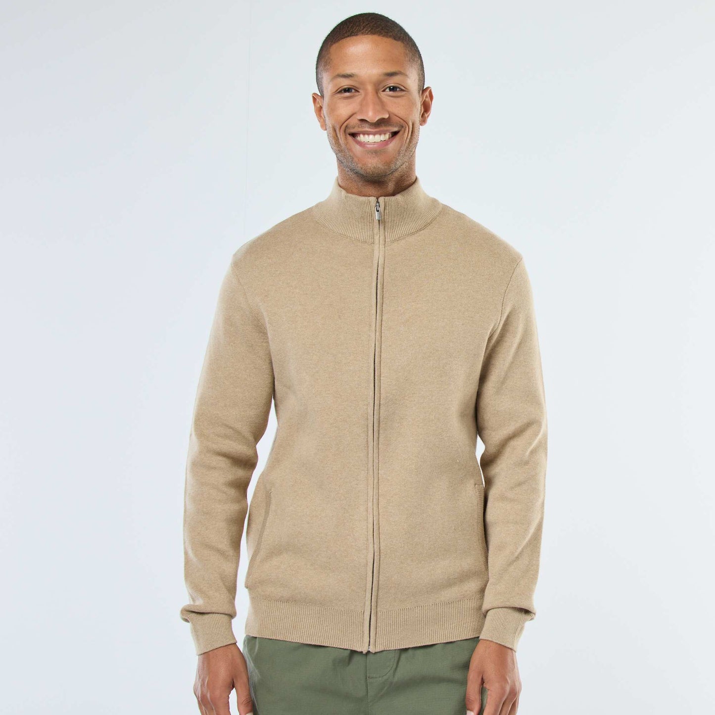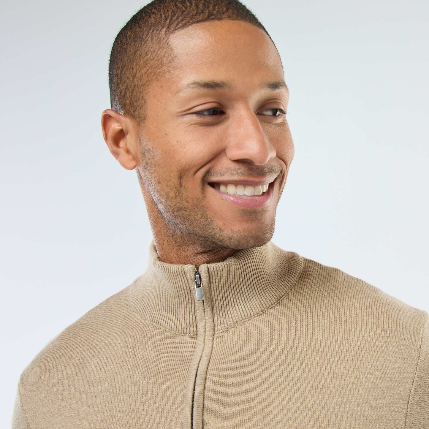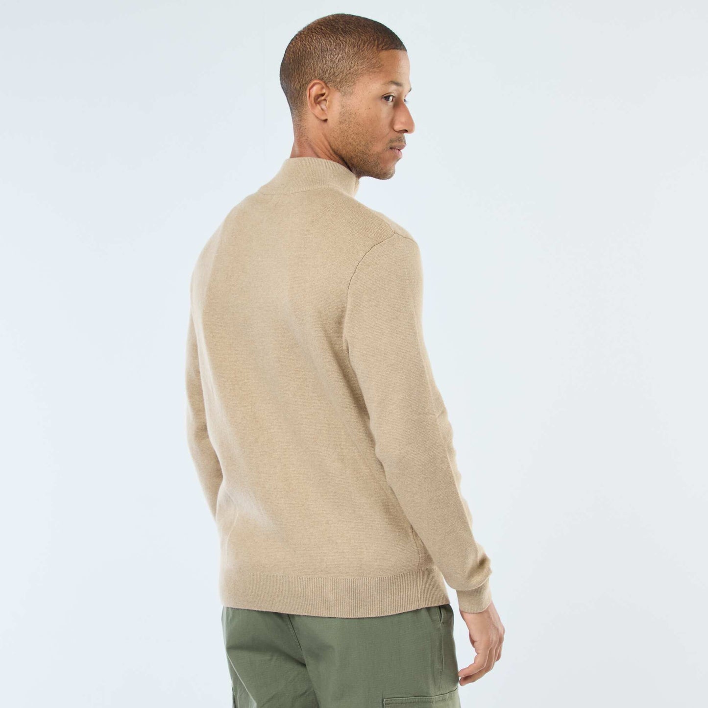 მყარი ელვა-შესაკრავი ჯემპრი დასადგომი საყელოთი კრემისფერი