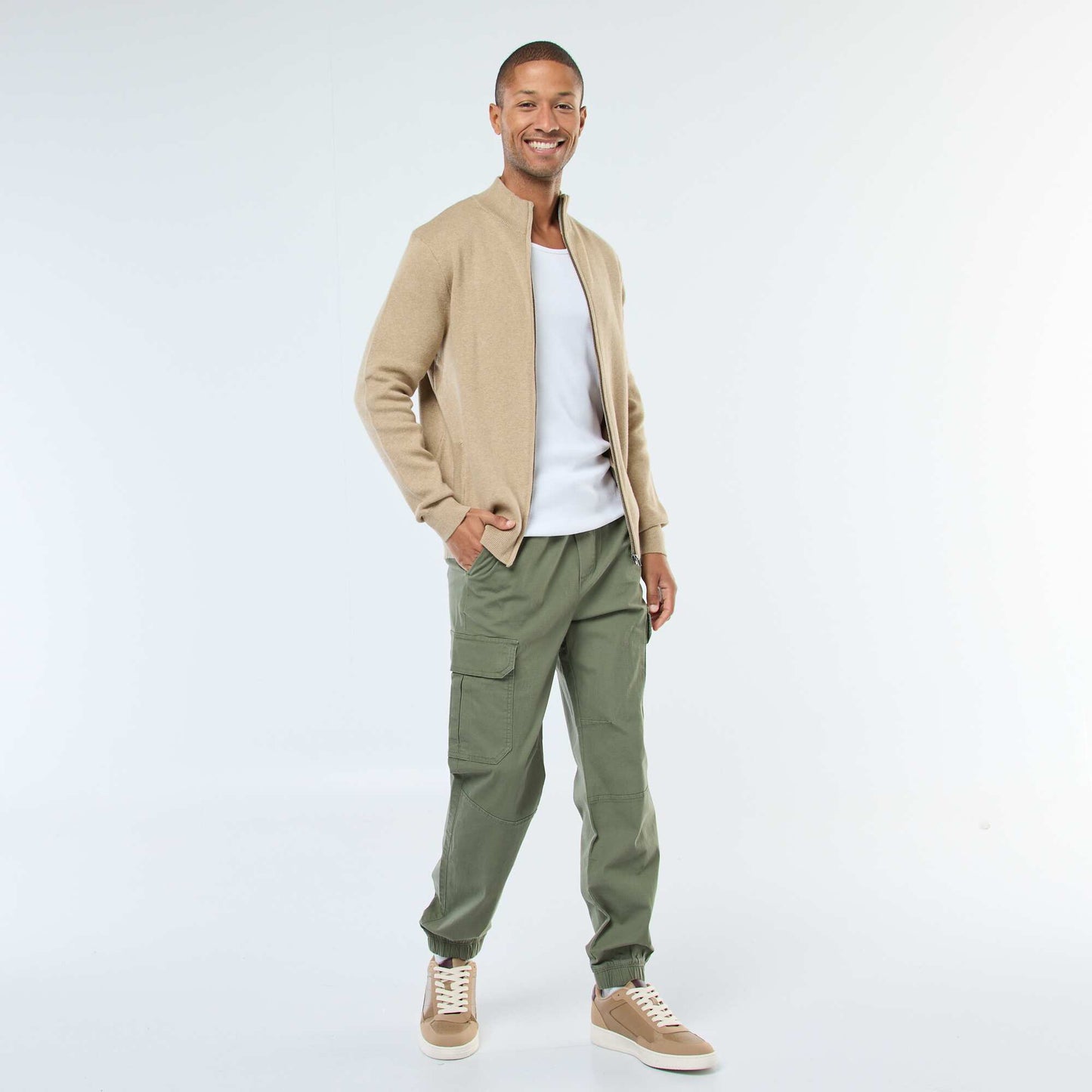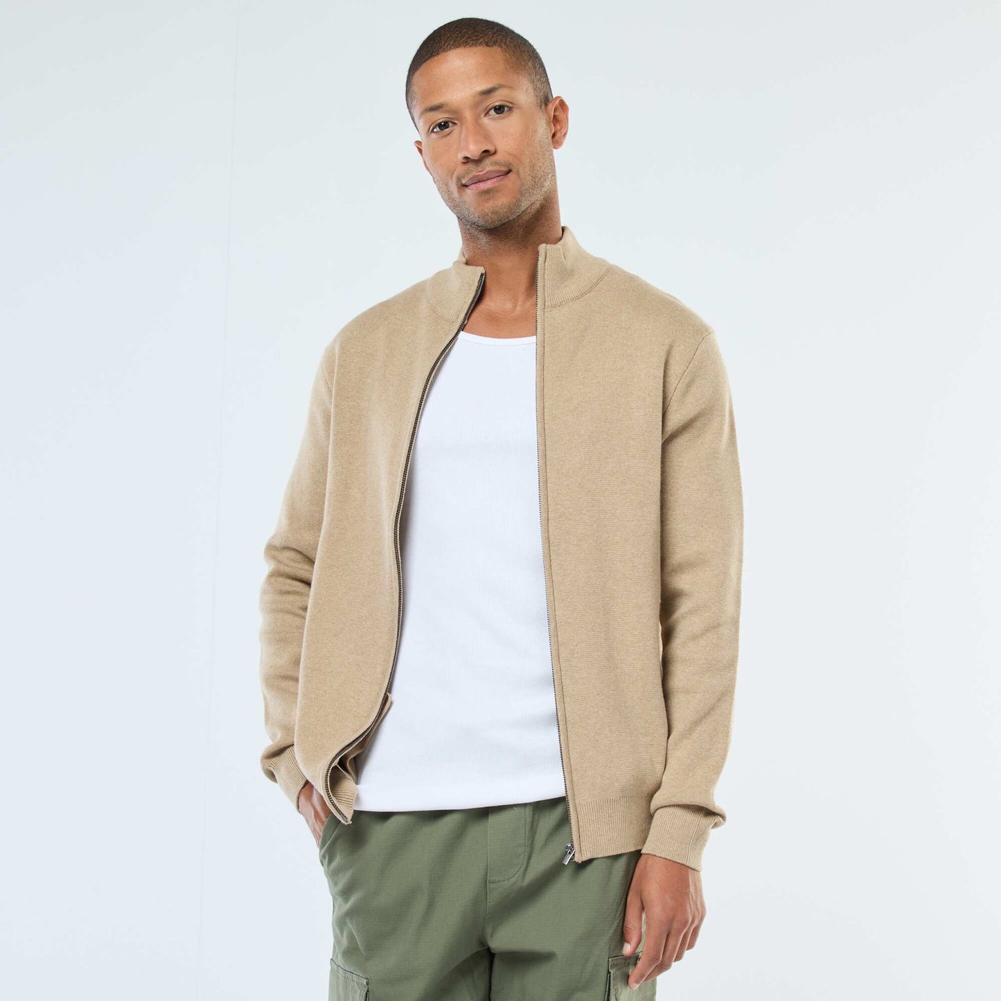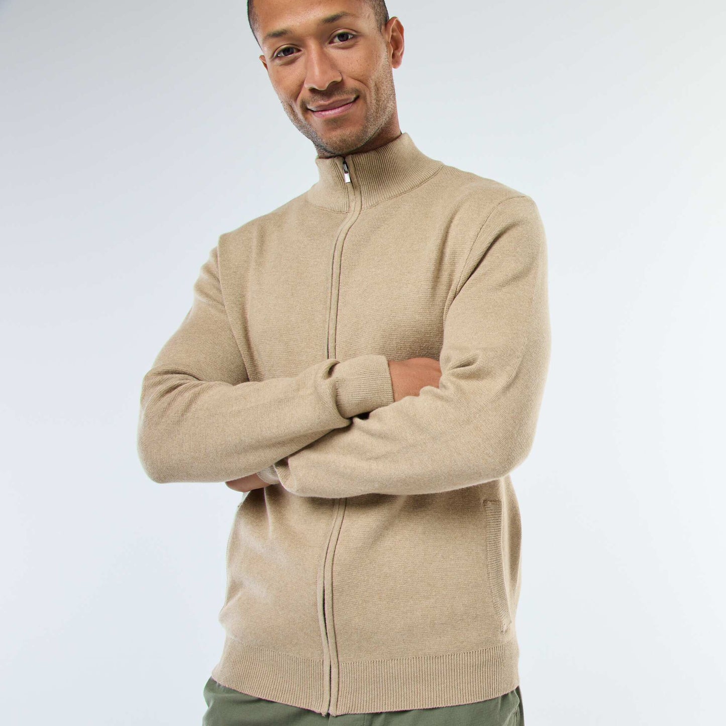 მყარი ელვა-შესაკრავი ჯემპრი დასადგომი საყელოთი კრემისფერი