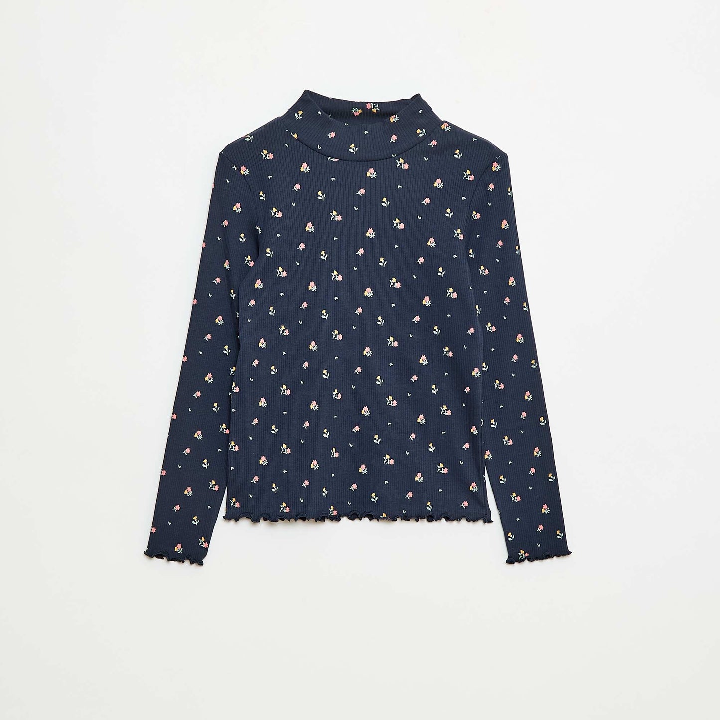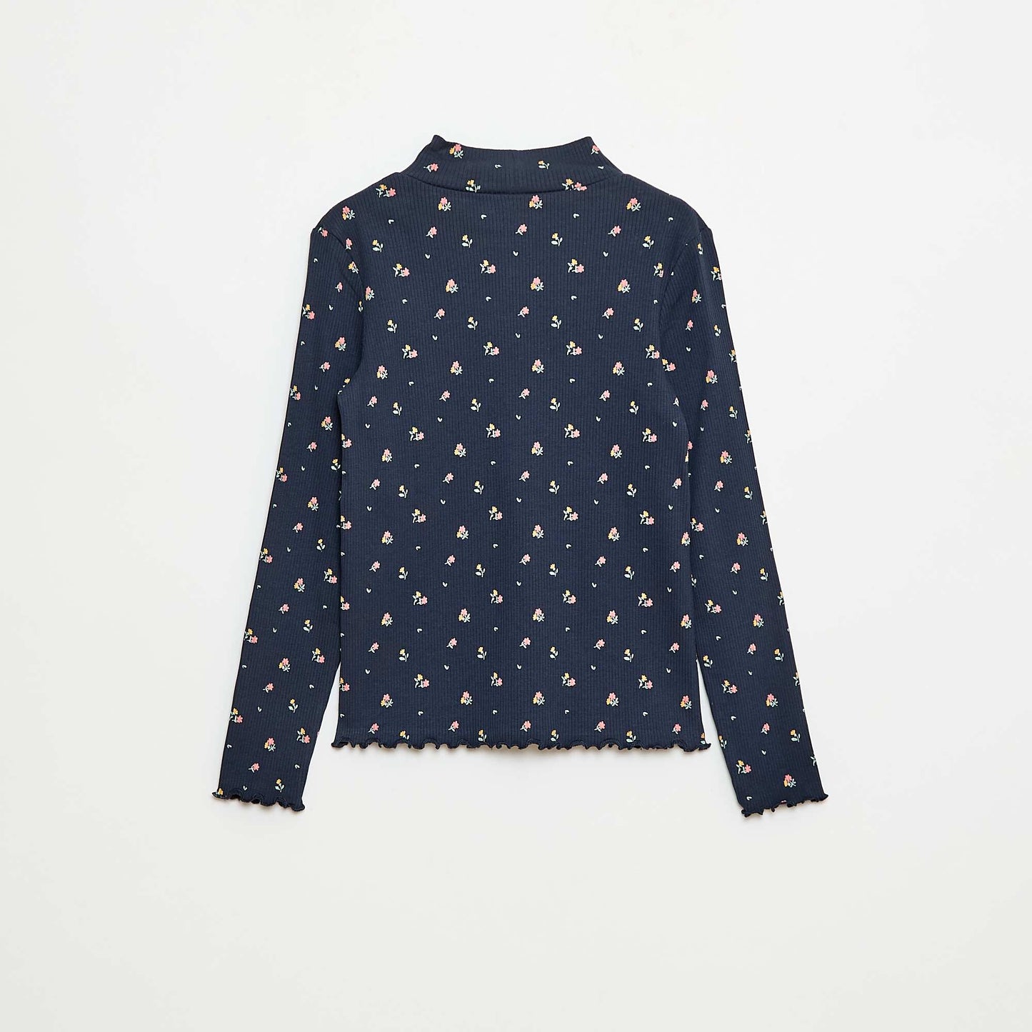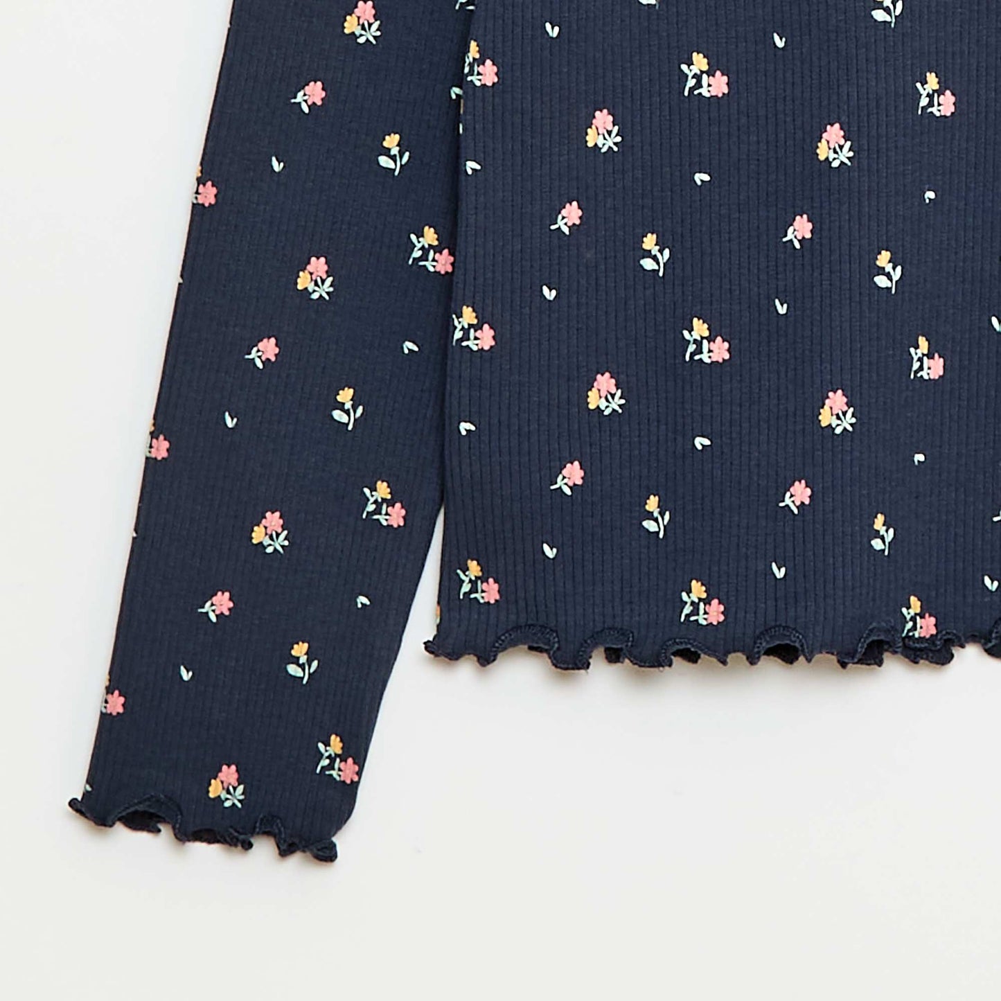 ბამბის ვერტიკალურ ღარიანი რულონისებური ტოპი ლურჯი