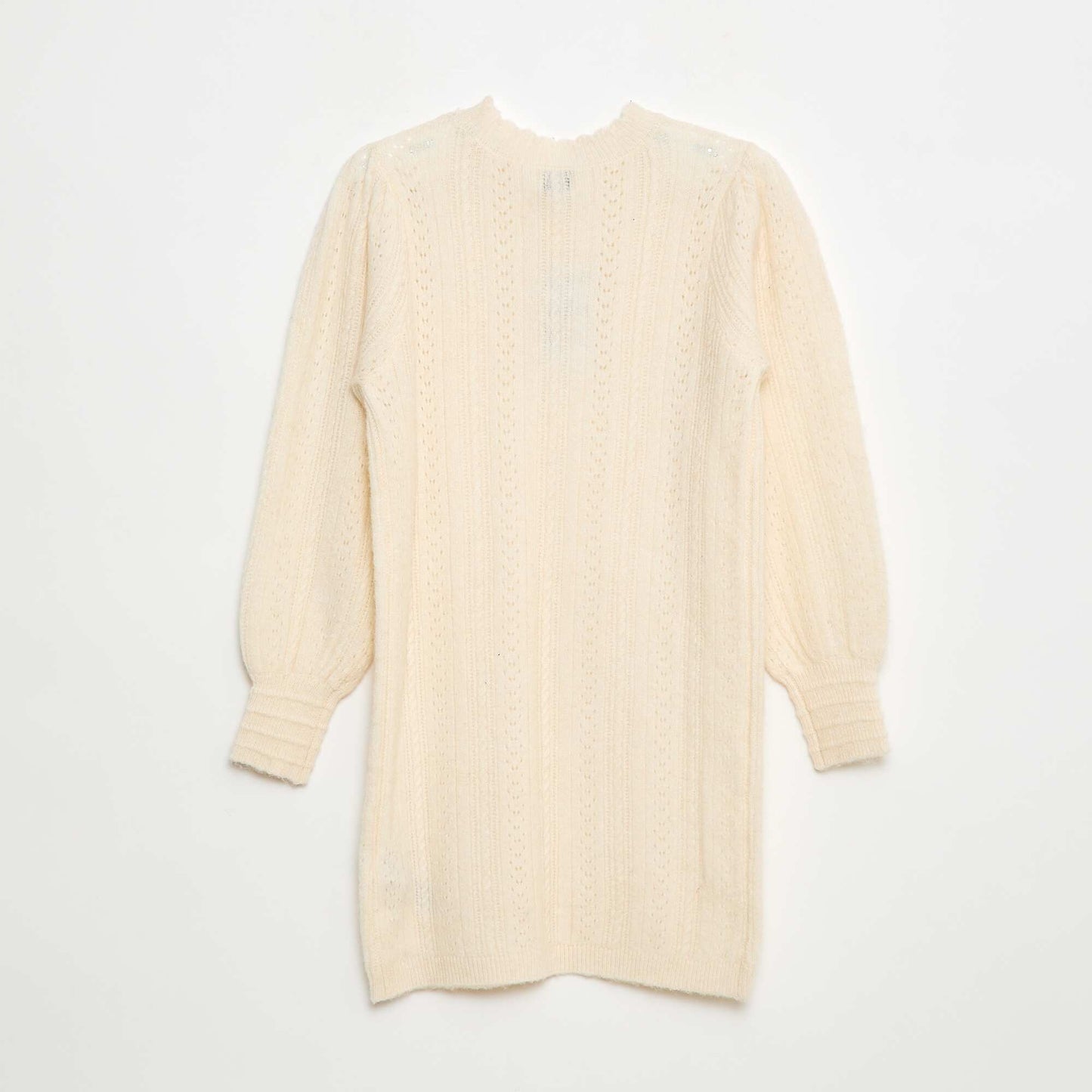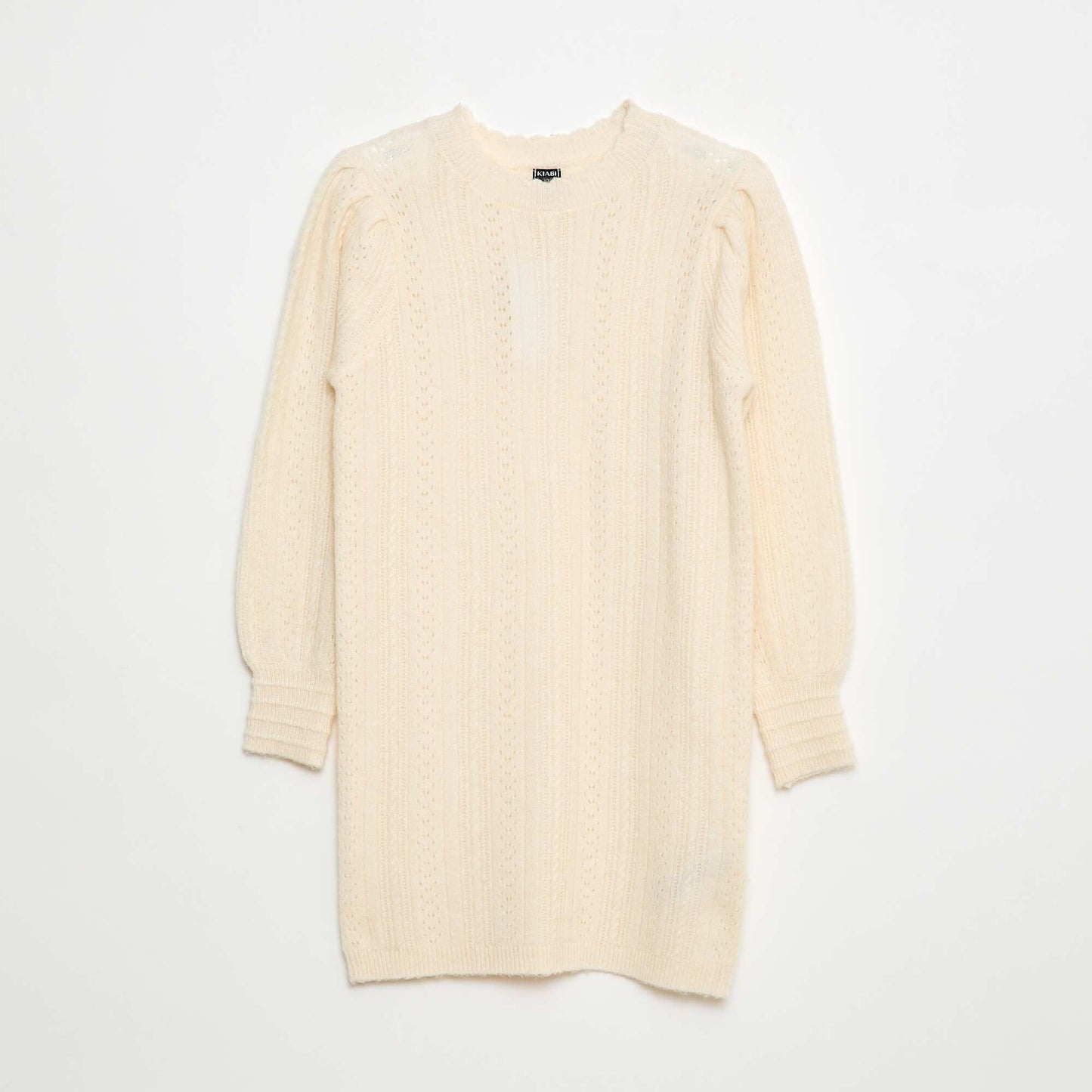 აჟურული ნაქსოვი სვიტერის კაბა კრემისფერი