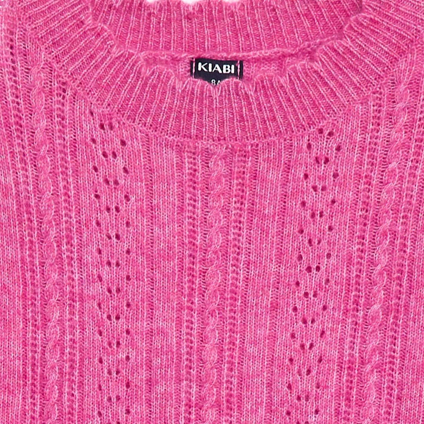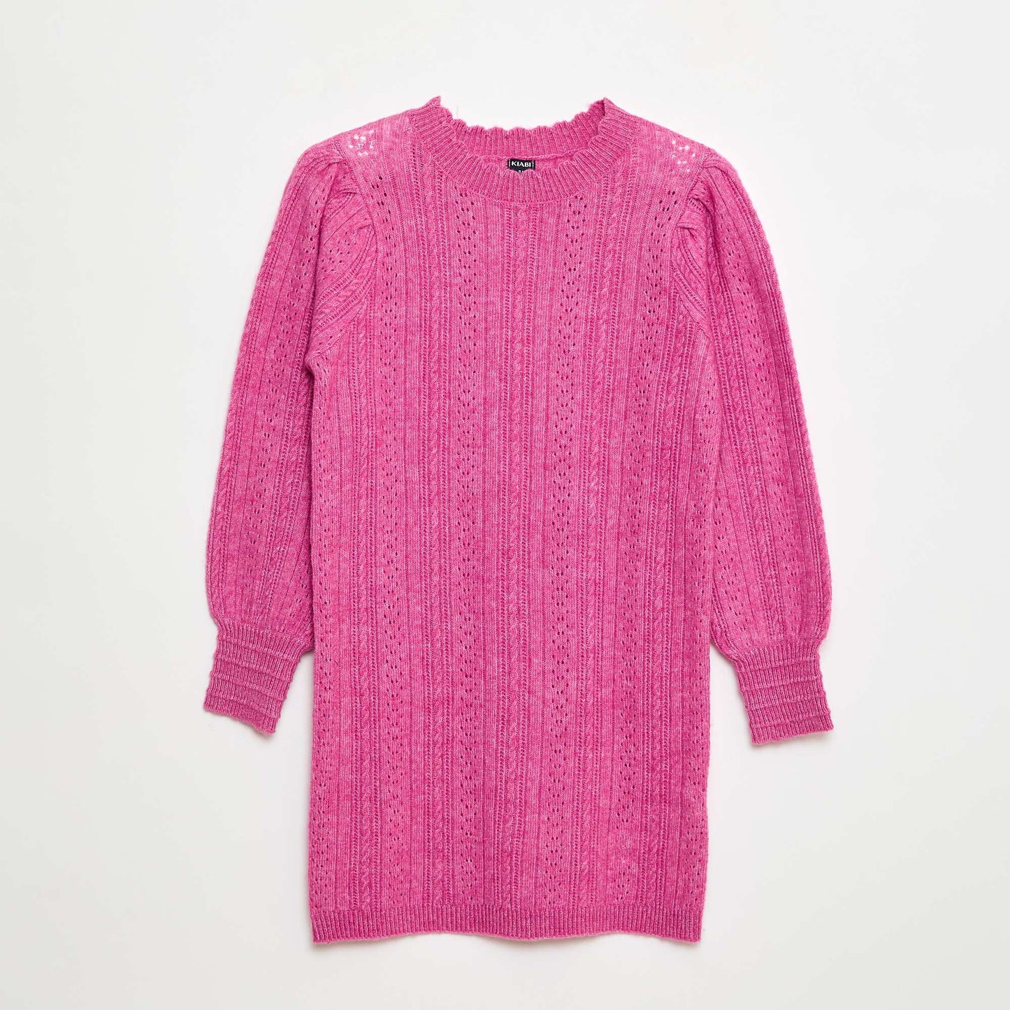 აჟურული ნაქსოვი სვიტერი-კაბა ვარდისფერი