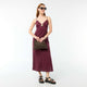 საშუალო სიგრძის კაბა დეკორატიული სამკაულით ყელით ვარდისფერი