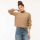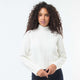 მაღალი კისრის ნაქსოვი კაბელი ჯემპრი კრემისფერი