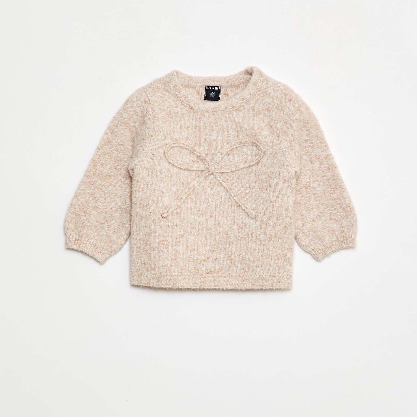 ნაქსოვი ჯემპრი დეკორატიული წინა ბაფთით კრემისფერი