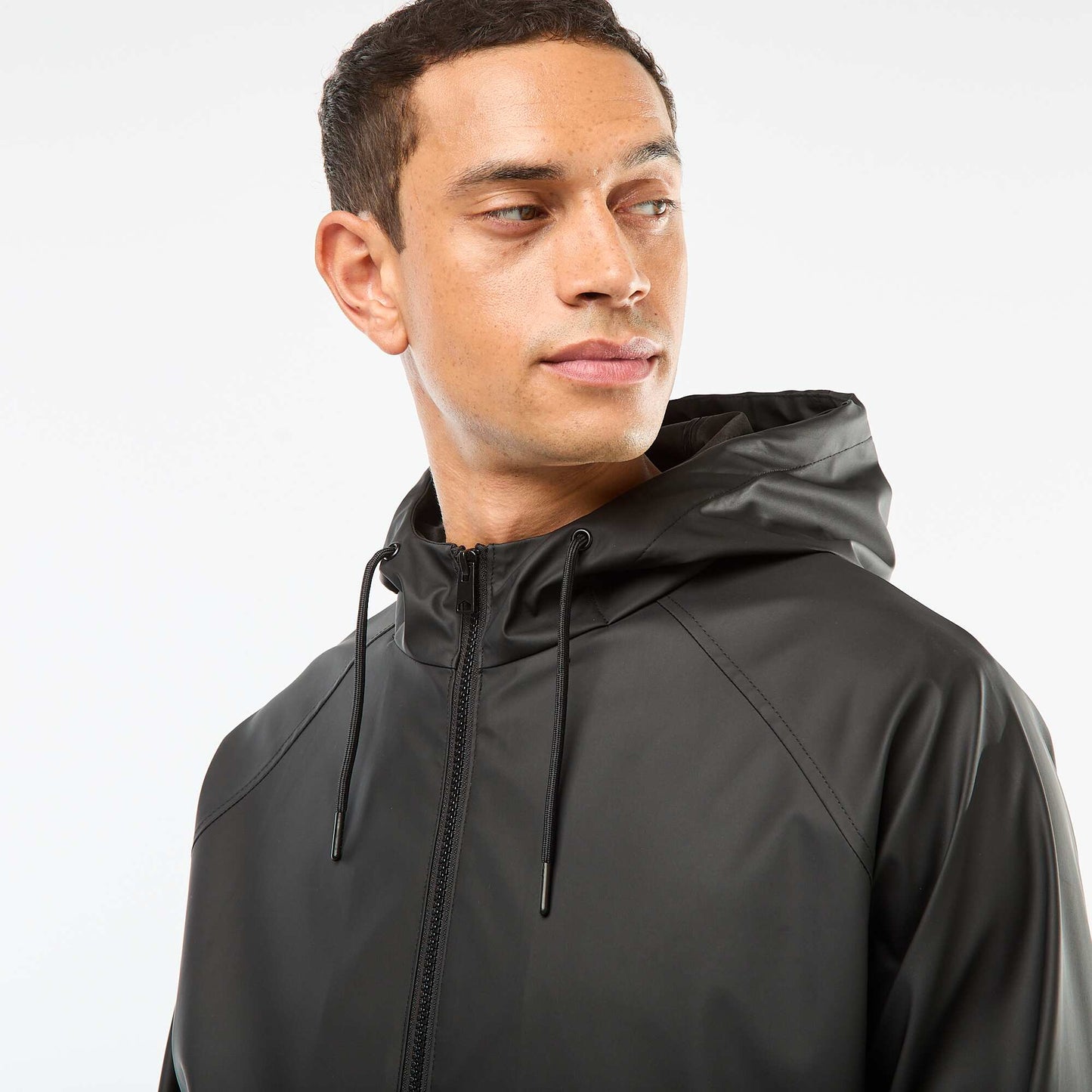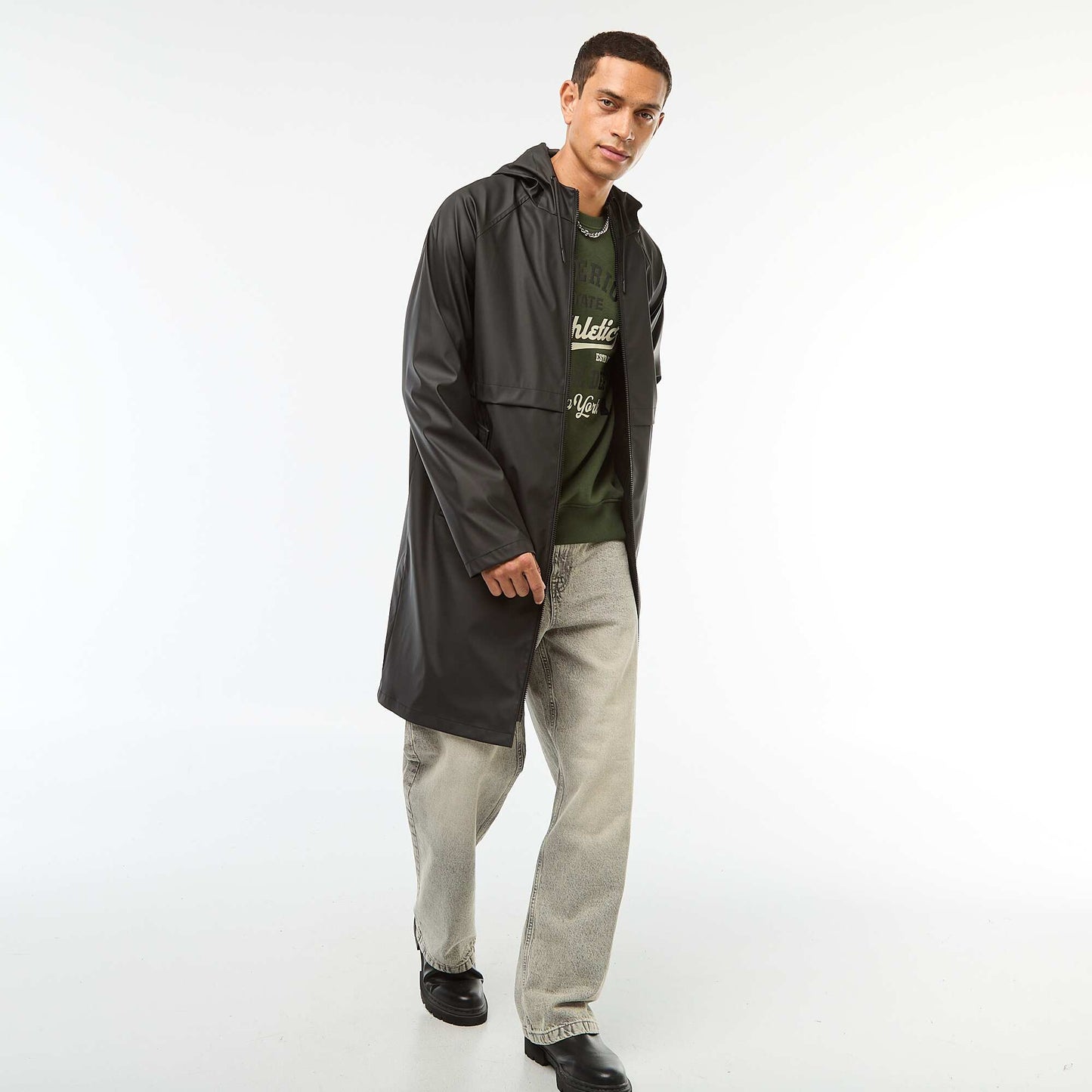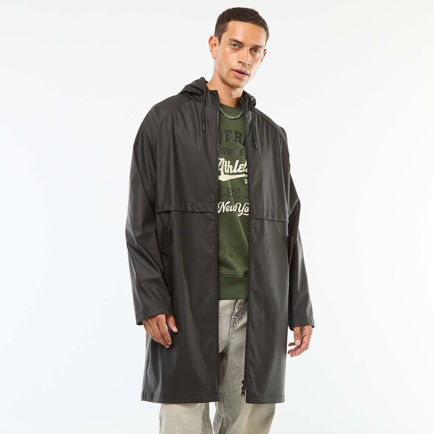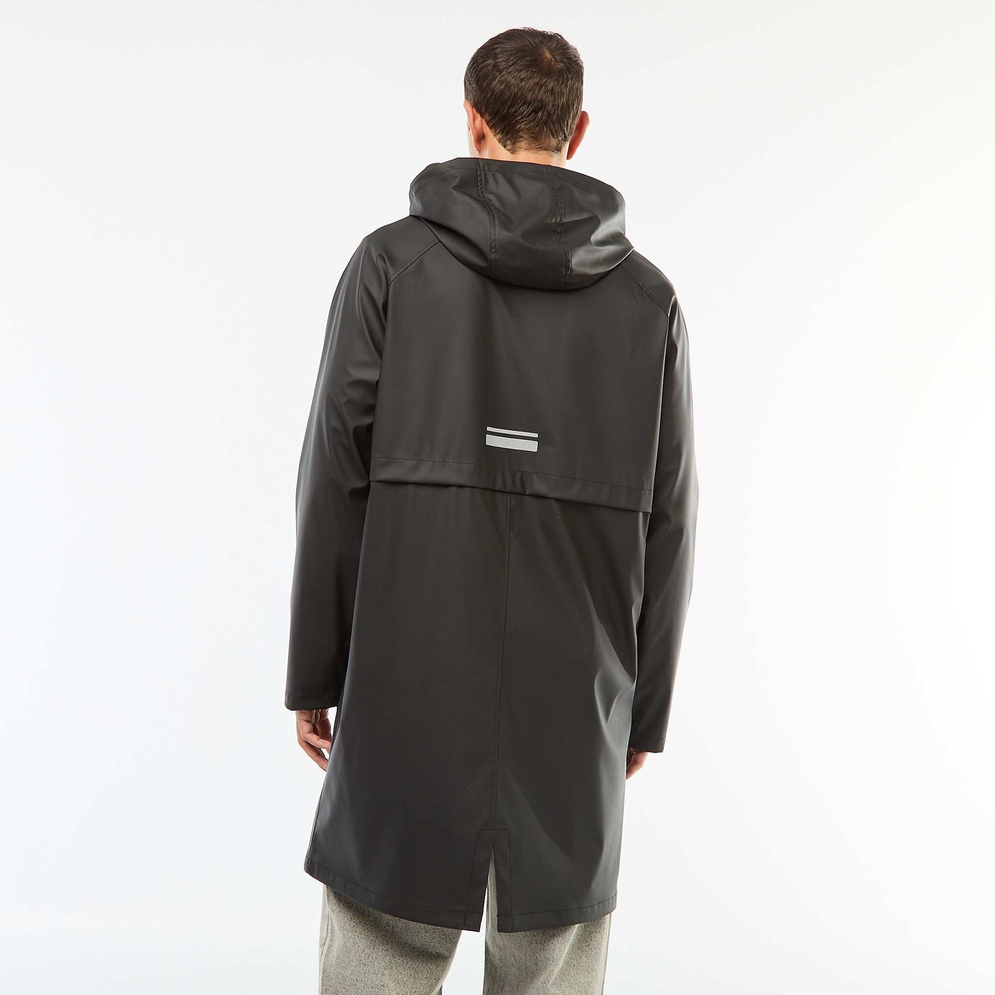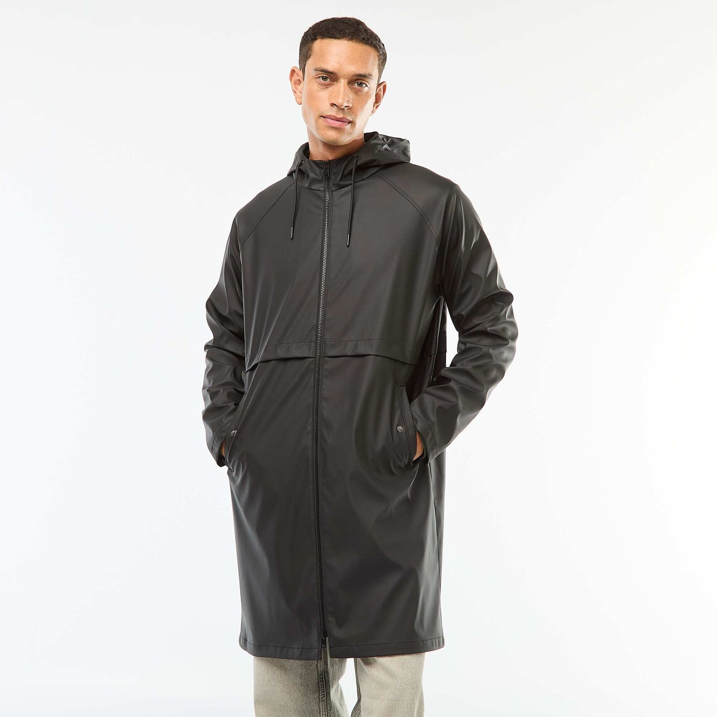გრძელი კაპიუშონიანი ტალღა საწვიმარი შავი