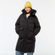 გრძელი თბილი, რბილი ქურთუკი კაპიუშონით შავი