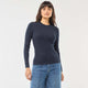 სადა ვერტიკალურ ღარიანი სვიტერი ჯვარედინი დეკოლტეთი ლურჯი