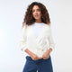 Cardigan-Effect Wrap Sweater with Gold Button WHITE