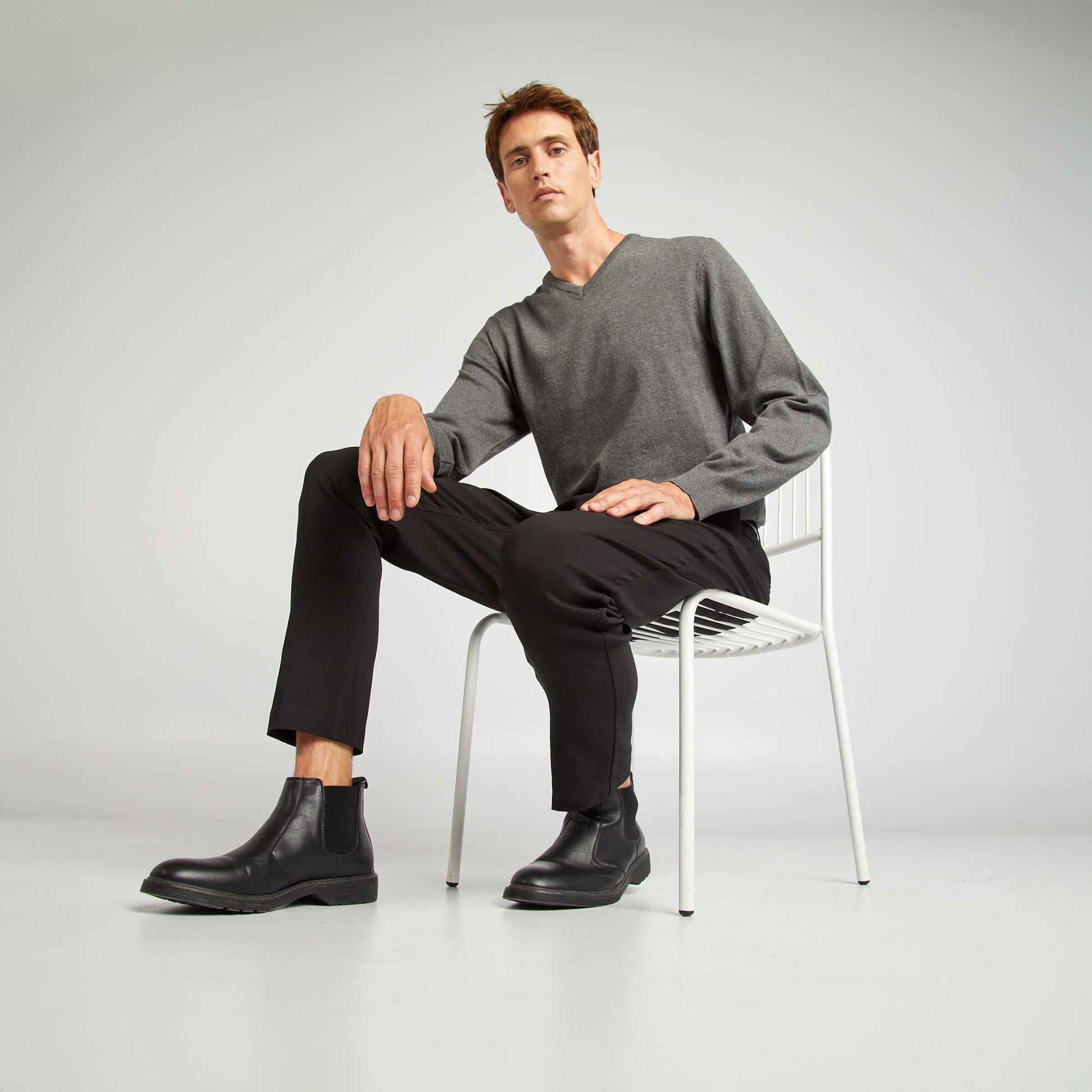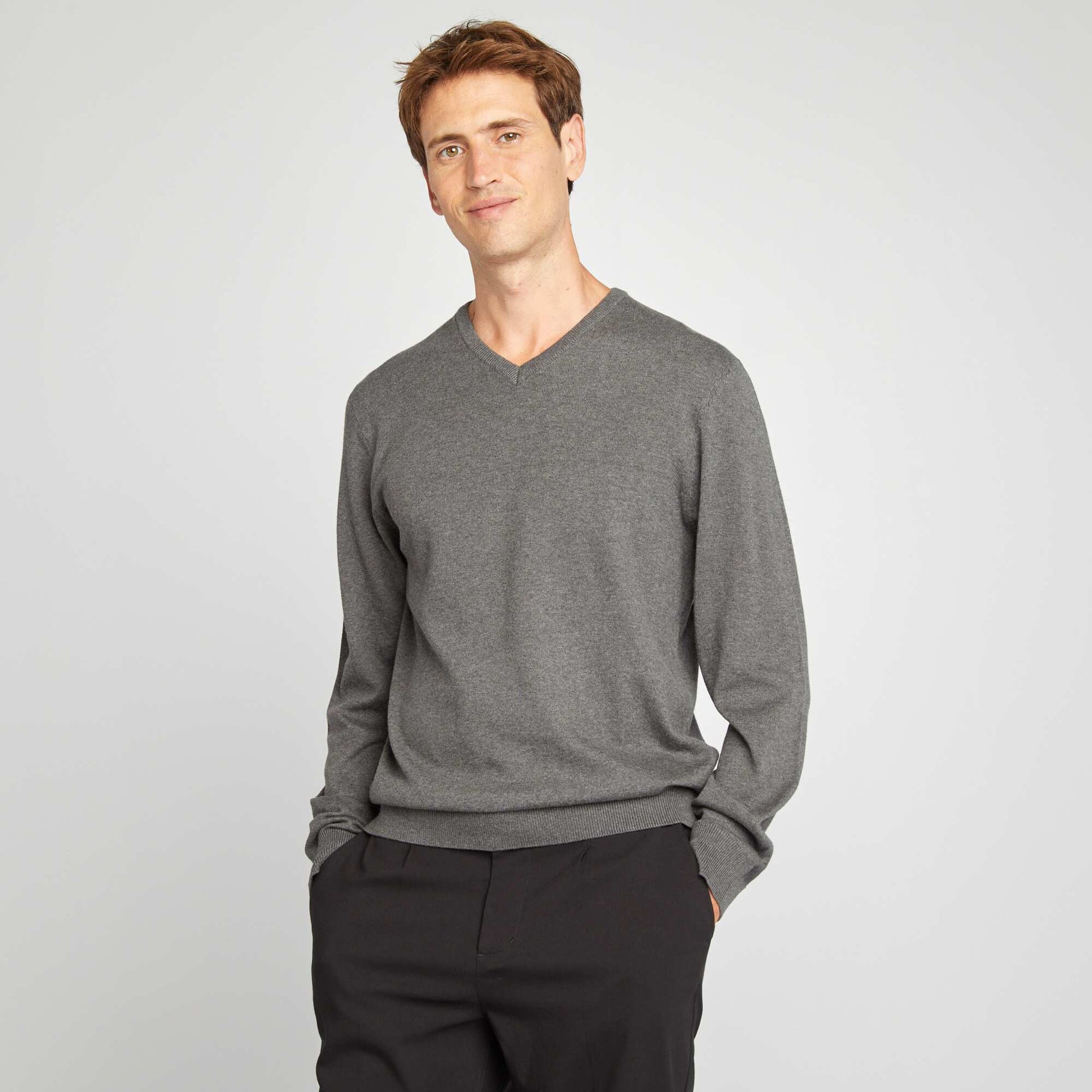 Plain knit basic sweater GREY