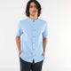 Solid Linen-Blend Short-Sleeve Mao Collar Shirt BLUE